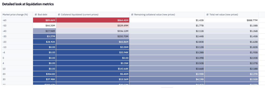 Should a 30% market drop occur, $359M in collateral could be liquidated (+3% MoM), potentially resulting in $3.3M in bad debt (-75% MoM)