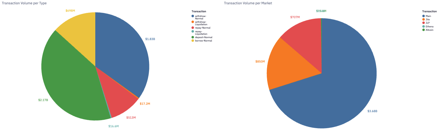 The Main Market handled over 70% of activity ($3.68B), followed by JLP ($850M) and Jito ($707M). Altcoin and Ethena remained niche but stable.