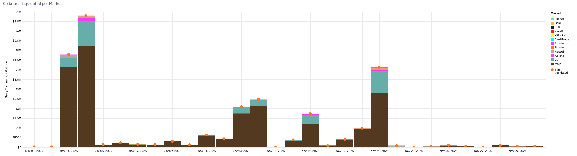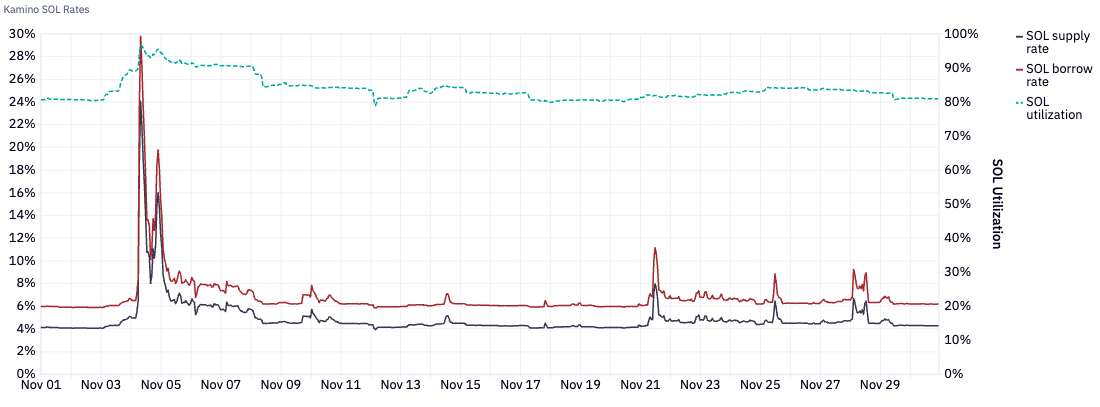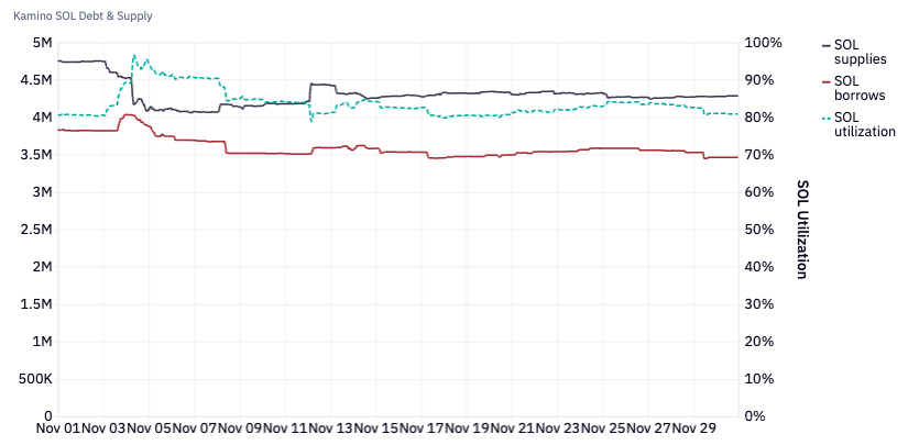 The contraction in supply and debt primarily stemmed from two factors: SOL's drawdown through the month (including a sharp drops on November 1-2 and 19-21) that triggered widespread deleveraging.