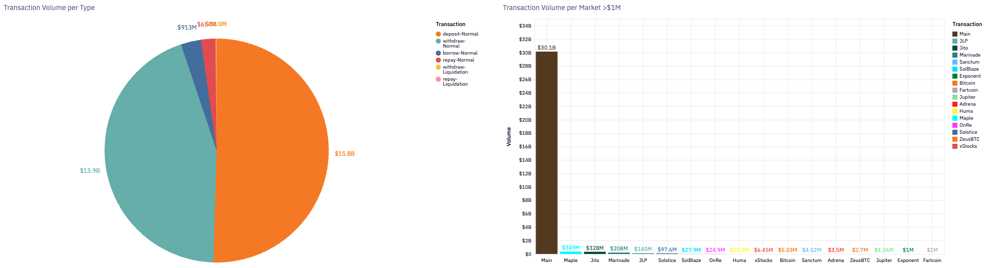 The positions liquidated were long positions, with stable debt. SOL's 62% liquidation share and 59% of events confirms its role as primary protocol collateral. The widespread distribution across 9,634 events rather than concentrated large liquidations indicates healthy risk distribution.
