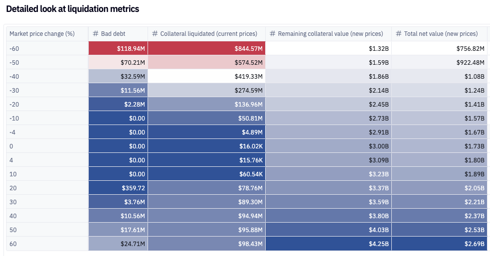-60% drop: $845M collateral at risk, $119M potential bad debt (9.16% of total debt)