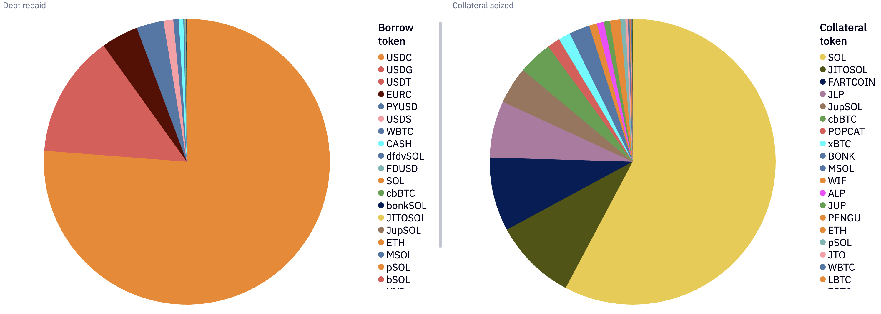 These patterns reflect a healthy liquidation flow - anchored by SOL as the most liquid collateral and USDC as the most liquid borrowed asset - minimizing systemic risk during sharp sell-offs.